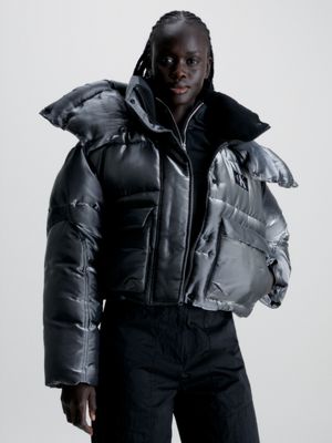 Product Item: Calvin klein hooded hot sale metallic puffer coat