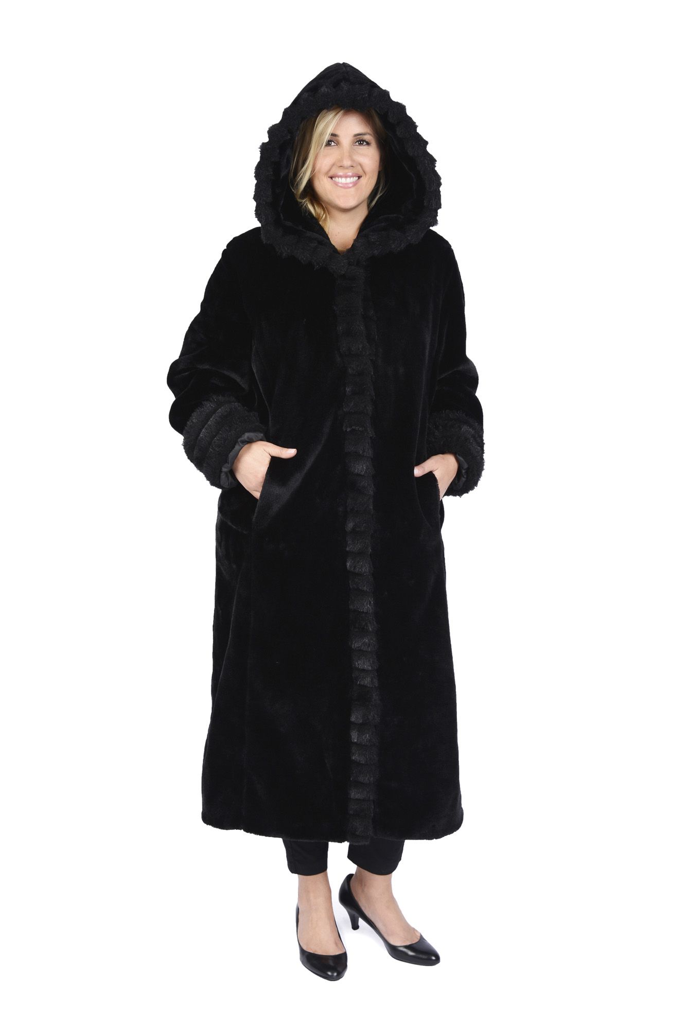 Excelled faux fur hot sale maxi coat with hood