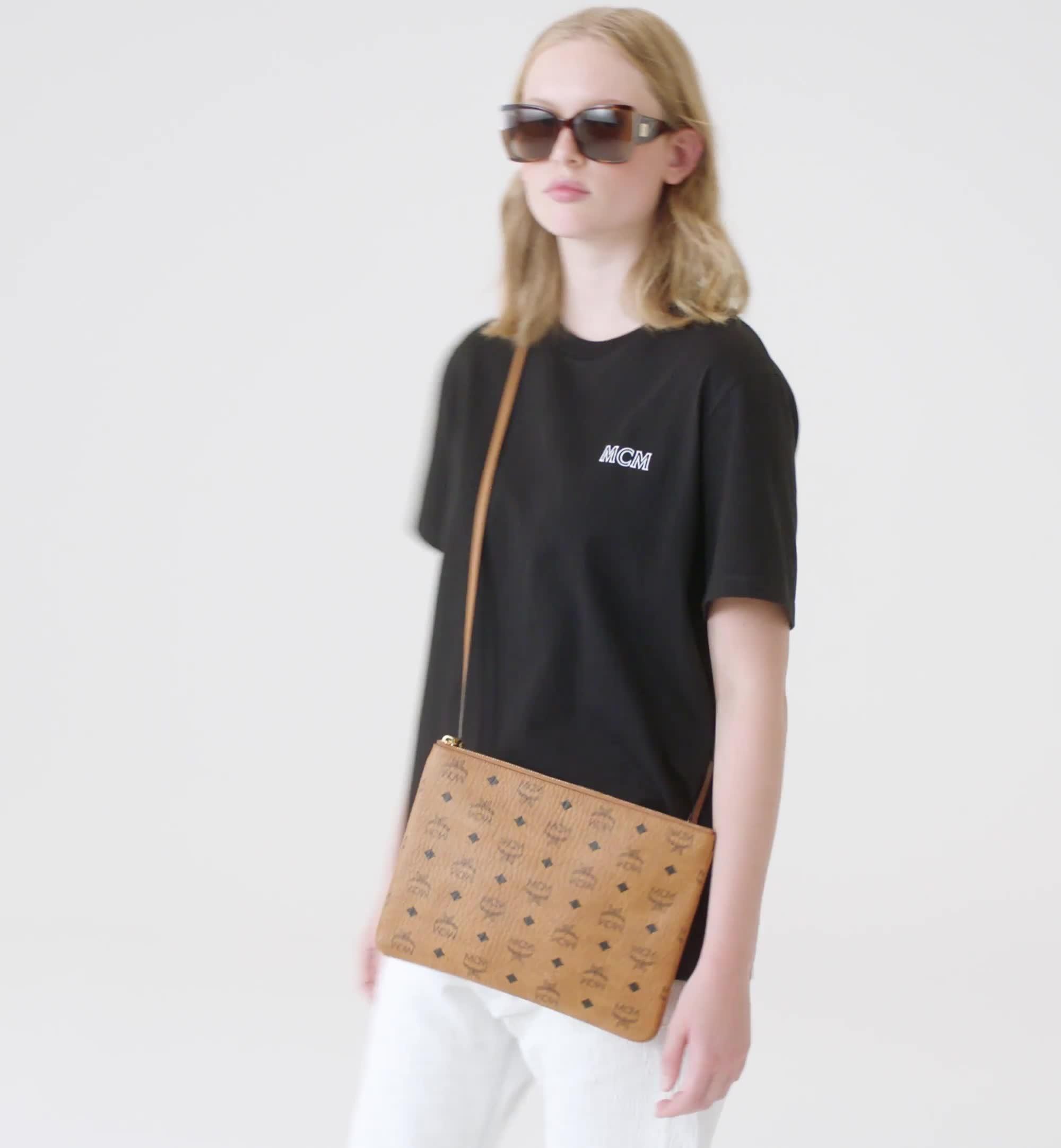 Mcm medium logo hot sale crossbody pouch bag