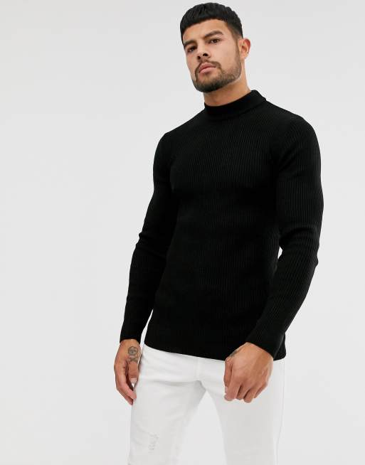 Mens black hot sale ribbed turtleneck