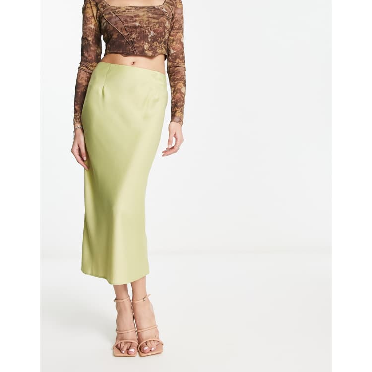 Satin midi hot sale skirt lime