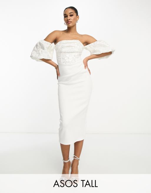 Product Item: White bardot hot sale puff sleeve dress