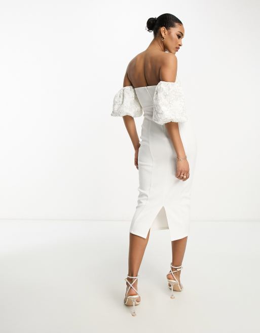 White bardot hot sale puff sleeve dress