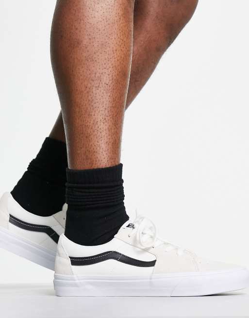 White vans hot sale black stripe womens