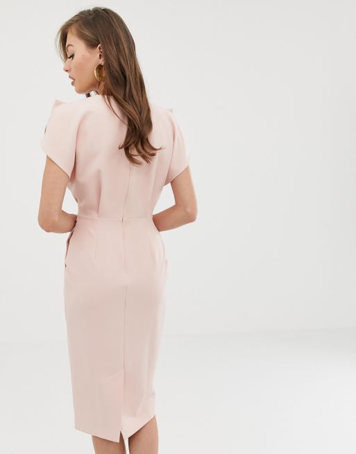 Asos design split cap sleeve hot sale midi pencil dress with buckle